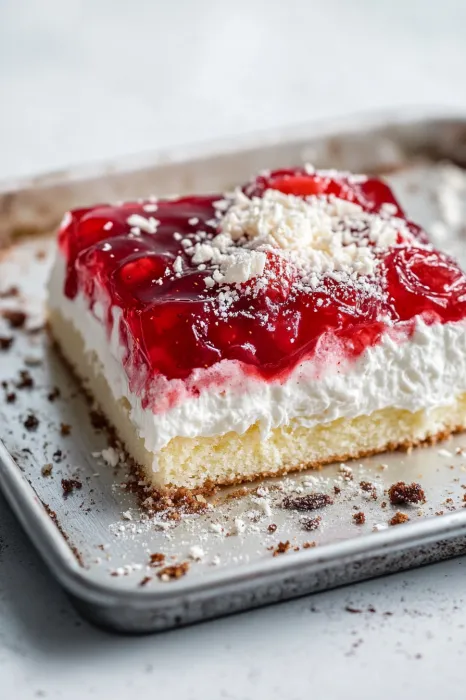 - Steife Sahne mit einer Palette oder dem Löffel locker auf der Erdbeerschicht verteilen Mit weißen Schokoladenraspeln üppig bestreuen In Stücke schneiden und gekühlt servieren